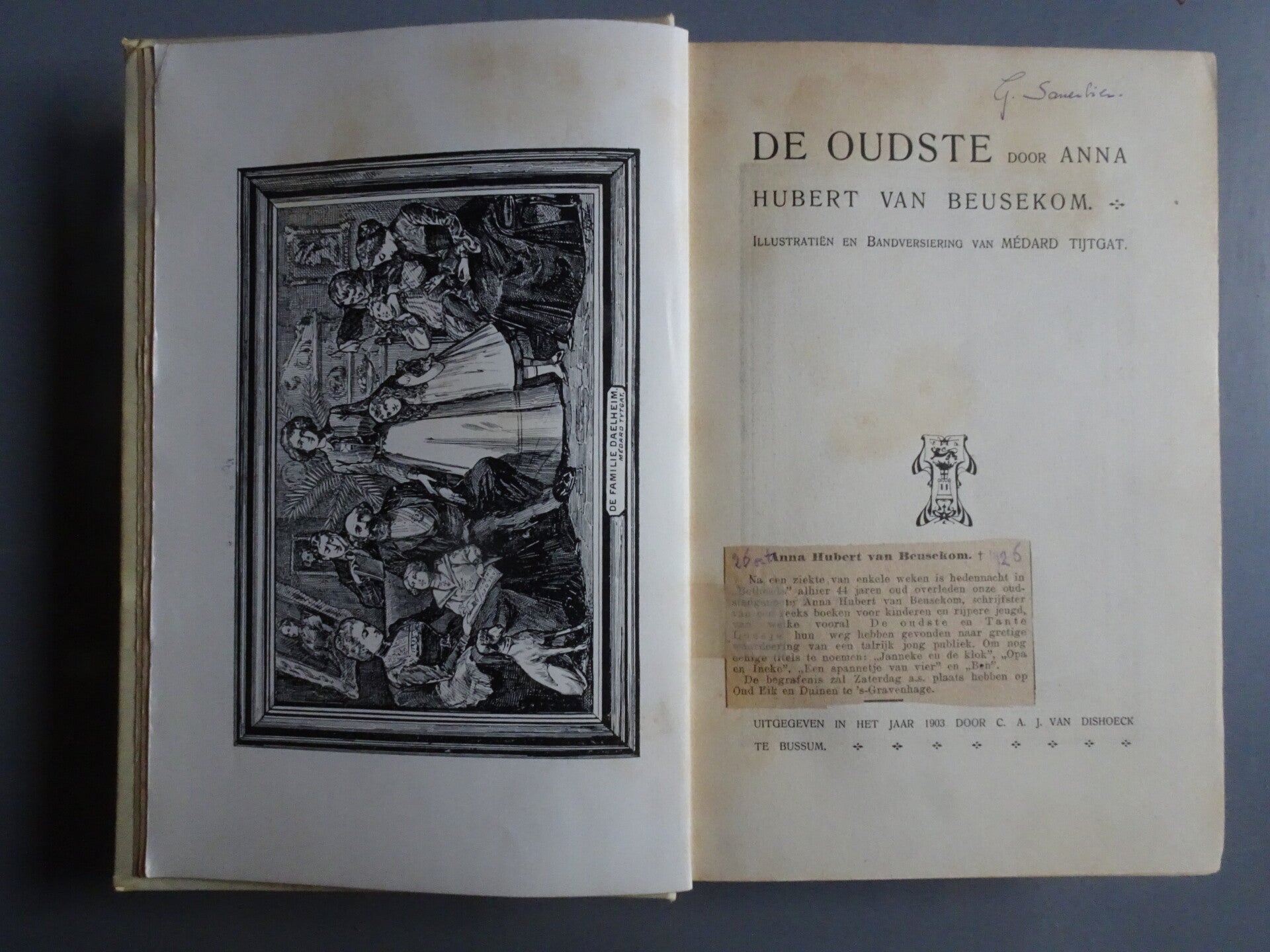 Met knipsel van overlijden schrijfster