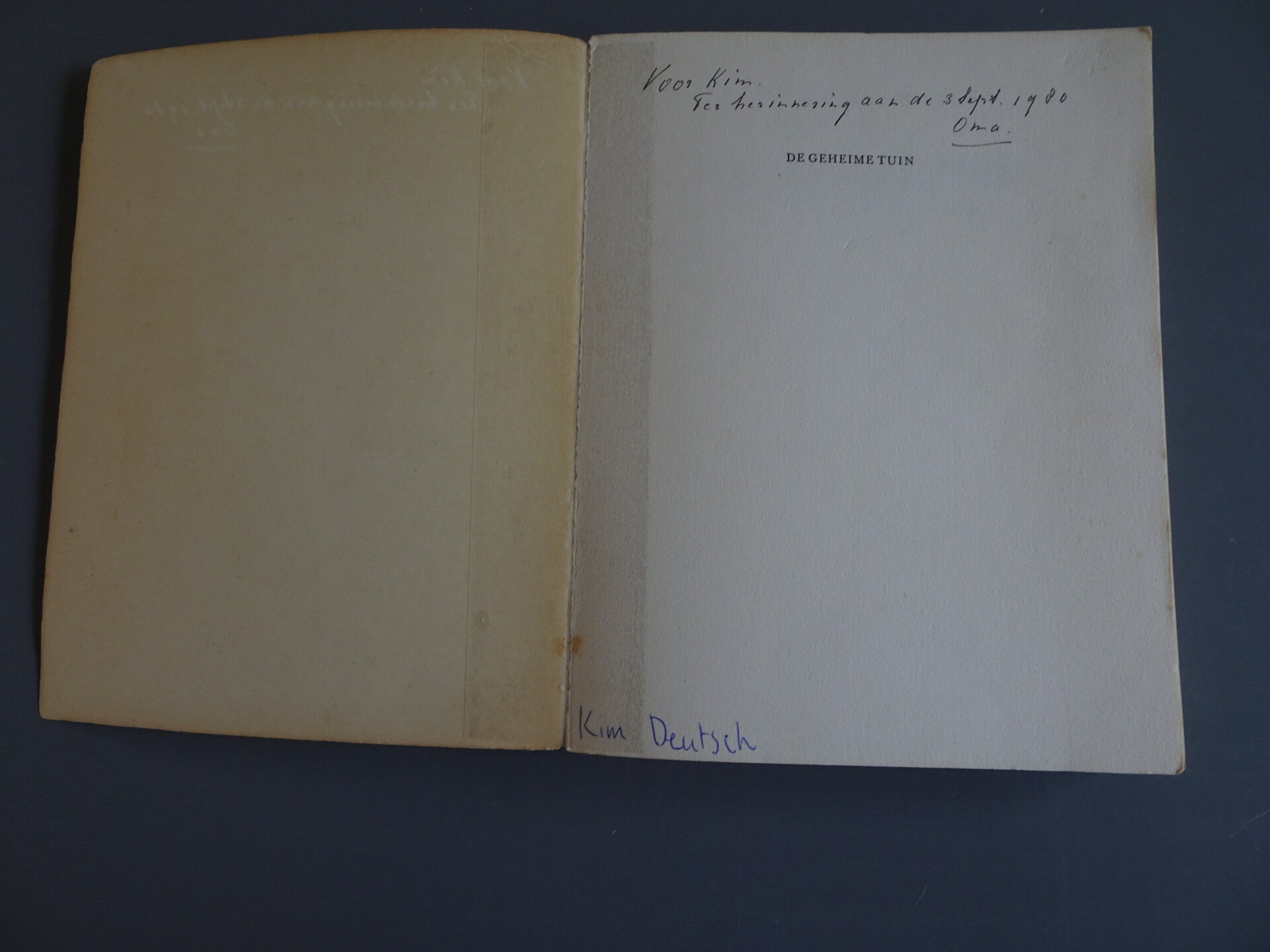 • De Geheime TuinNaam en opdracht voorin.
